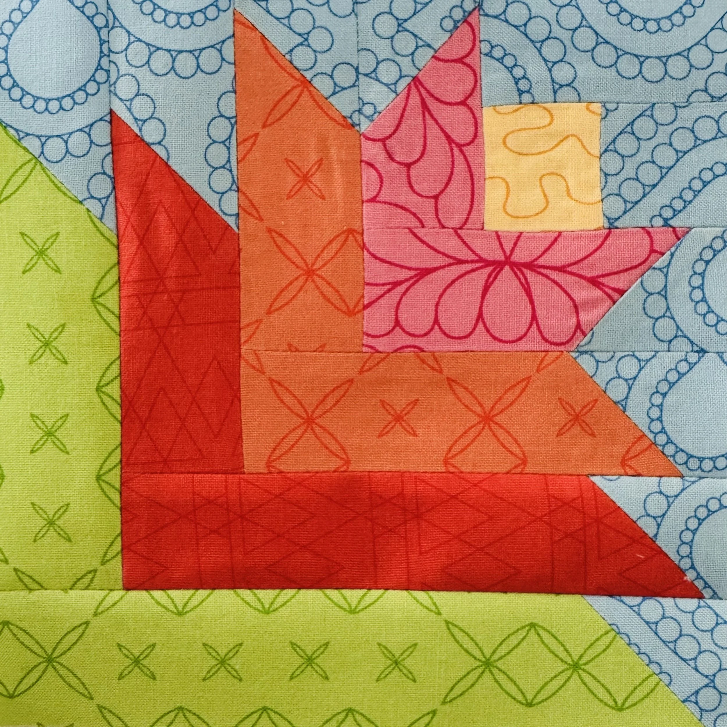 Traditionally pieced Log Cabin Style, Lotus Flower Block.